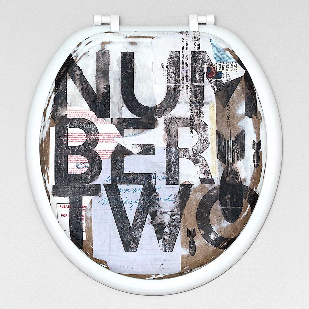 Emulsion transfer and collage on a toilet seat. Created for the “1’s and 2’s” Art Show @ Suburban Art & Vinyl that took place on March 28th 2014.